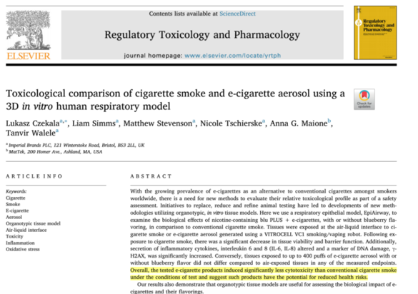 最近(jìn),在毒理(lǐ)藥理(lǐ)學領域頗具權威的(de)學術 ♠(shù)期刊Regulatory Toxicoδ£logy and Pharmacology發表了(le)∑∑©一(yī)項關于香煙(yān)和(hé)電(diàn)子(zǐ)煙(yān)¶'毒理(lǐ)性的(de)對(duì)比研究。